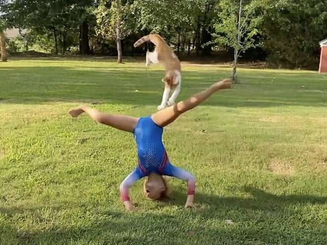 Кот-хулиган сорвал выступление юной гимнастки
