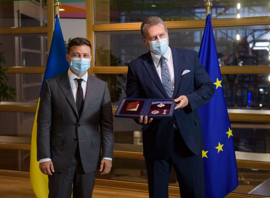 У Брюсселі Президент України Володимир Зеленський вручив віце-президенту Європейської комісії з питань міжінституційних відносин Марошу Шевчовичу орден князя Ярослава Мудрого II ступеня.