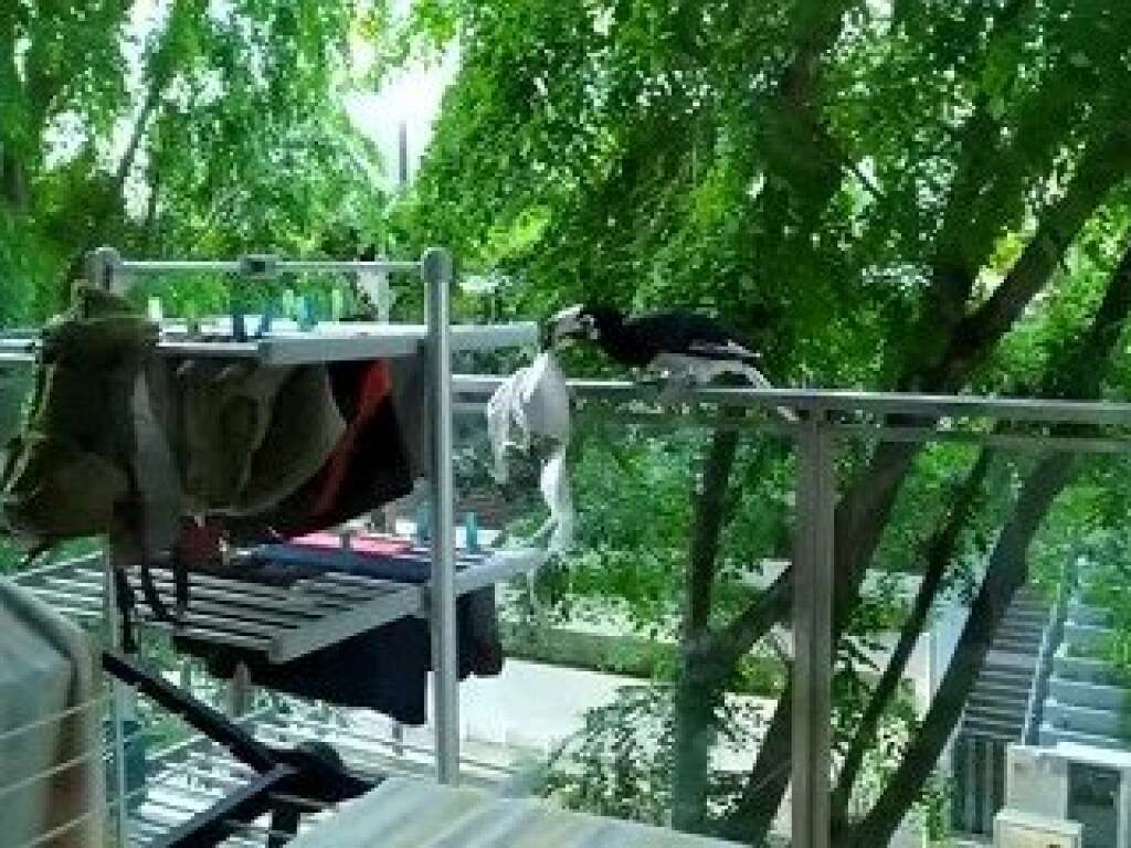 Волнистая птица-носорог попалась на очень «пикантной» краже — она позарилась на бюстгальтер, висевший на сушке для белья.