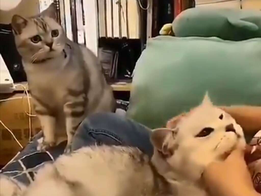 Ах, если бы наши питомцы умели говорить! Сколько бы, наверное, всего сказала кошка из этого видео, которая приревновала свою хозяйку к другой пушистой представительнице семейства кошачьих. Впрочем, такая эмоциональная реакция позволяет понять ее мысли без слов.