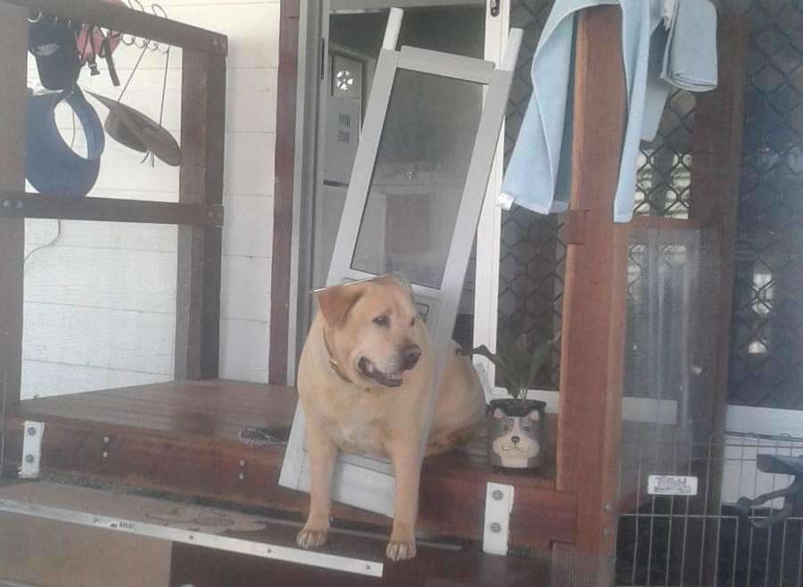Лабрадор по кличке Дракс с возрастом немного располнел, но в душе остался все таким же озорным щенком. Однажды он пытался пройти через отверстие для домашних животных, но застрял. В попытке освободиться, питомец выломал дверь. Теперь беднягу ждет диета.