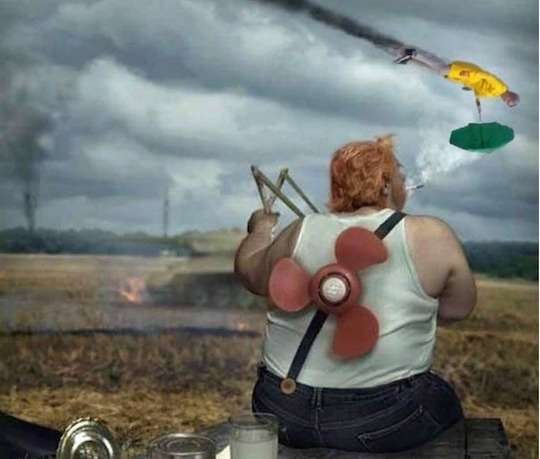 Среди сюжетов фотожаб, которыми высмеивают незначительные достижения президентской партии, в частности «пролет» кандидатки от «Слуги народа» Ирины Верещук на выборах киевского мэра — традиционные коты, которые «все уронили», кадр из французской комедии и фото сломанного зеленого зонта.