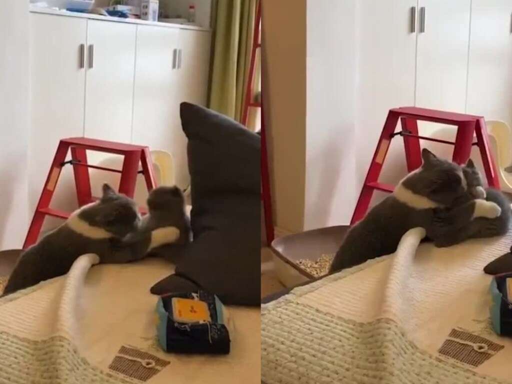 Каждой маме знакома ситуация, когда ее ребенок становится слишком крут для обнимашек и нежностей в целом. Оказывается, в мире животных бывают похожие ситуации. Так, кошке из этого вирусного ролика пришлось буквально силой заставлять своего малыша обниматься и играть.