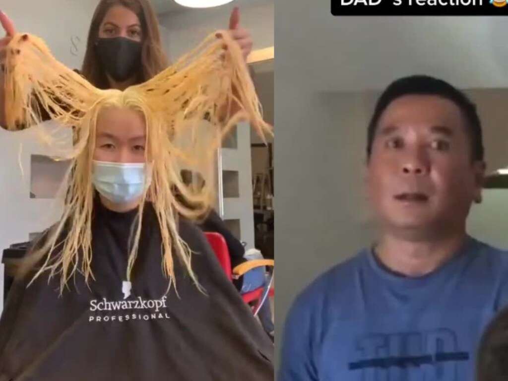 Многие родители являются консерваторами до мозга костей: они не любят татуировки, эксперименты с лицом или волосами. Отец главной героини данного ролика относится именно к описанному типу людей. Однако это не помешало ей исполнить свою мечту и покраситься из брюнетки в блондинку.