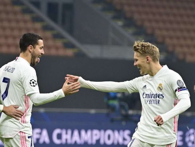 25 ноября, 22:00Милан, “Сан-Сиро”Лига чемпионов, 4 тур”Интер” – “Реал” 0:2Гол: Азар, 7 (пен), Родриго, 59″Интер”: Ханданович, де Врей, Шкриньяр, Бастони (Д`Амброзио, 46), Хакими (Санчес, 64), Гальярдини (Конте, 78), Янг, Видаль, Барелла, Лукаку (Эриксен, 87), Мартинес (Перишич, 46)”Реал”: Куртуа, Карвахаль, Варан, Начо, Менди, Кроос, Модрич, Эдегор (Каземиро, 58), Азар (Винисиус, 78), Васкес, Диас (Родриго, 58)Удаление: Видаль, 34