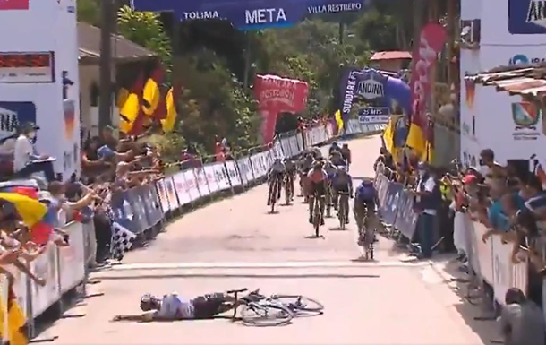 В Колумбии проходит многодневная классическая велогонка Clasico RCN. Велогонщик Эдисон Муньос Лопес выиграл этап падением прямо на финишной линии. Видео опубликовано на странице Win Sports Tv в Twitter.