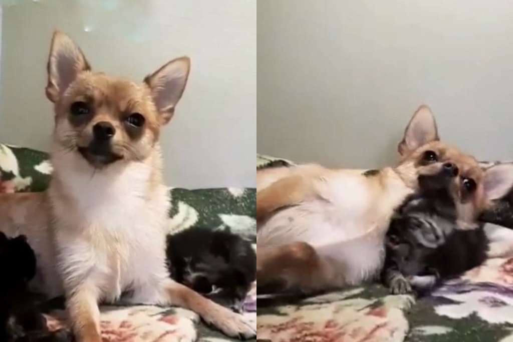 У собаки Клепы родился очень слабый щенок, и вскоре малыш умер. Такая же участь ждала маму маленьких котят. Тогда питомица приняла малышей и заменила им родителей, доказав, что чужих детей не бывает.