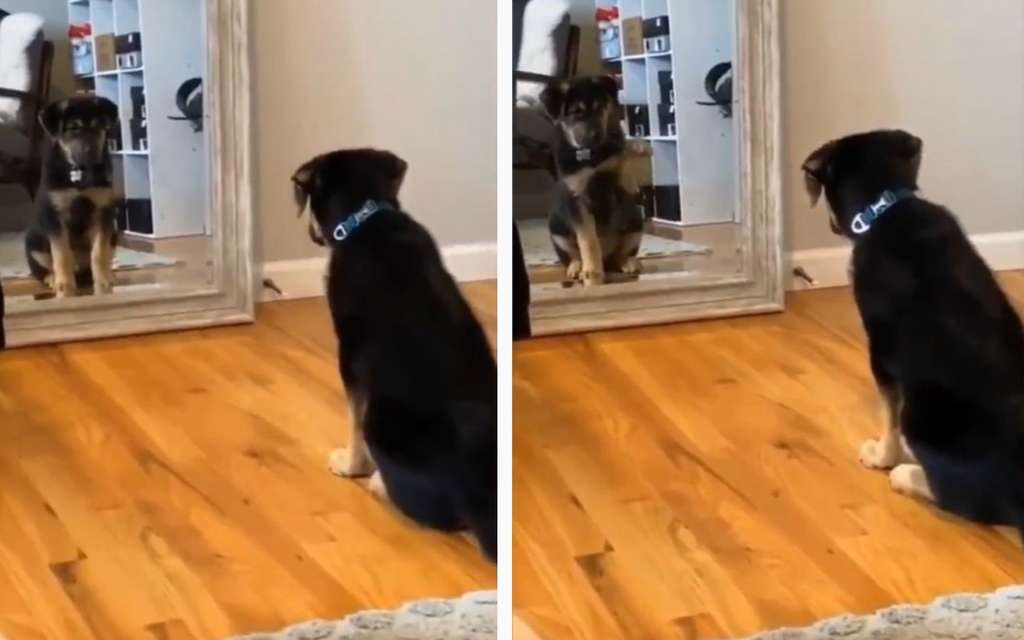 У животных нередко бывают проблемы с зеркалами. Многие из них пугаются собственного отражения, а порой даже затевают с ним нешуточные разборки. Но только не пёсиль из этого видео.