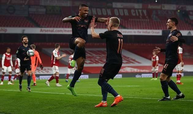 “Арсенал” — “Манчестер Сити” 1:4Голы: Ляказетт, 31 — Габриэль Жезус, 3, Марез, 55, Фоден, 59, Ляпорт, 73″Арсенал”: Рунарссон — Мустафи, Габриэль, Колашинац — Суареш, Эльнени (Смит-Роу, 66), Себальос, Мэйтленд-Найлз — Уиллок, Ляказетт (Балогун, 77), Мартинелли (Пепе, 49)”Манчестер Сити”: Стеффен — Канселу, Диаш, Ляпорт, Зинченко — Родри (Уокер, 77), Фернандиньо — Марез, Силва (Торрес, 70), Фоден — Габриэль Жезус (Агуэро, 74)