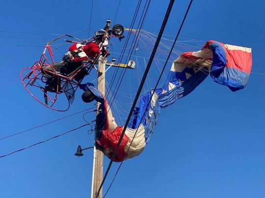 В городе Рио-Линда в округе Сакраменто (американский штат Калифорния) пожарным пришлось спасать мужчину в костюме Санта-Клауса, который решил полетать на мотопараплане, но запутался в линии электропередач. Сюжет об этом показал телеканал KCRA.