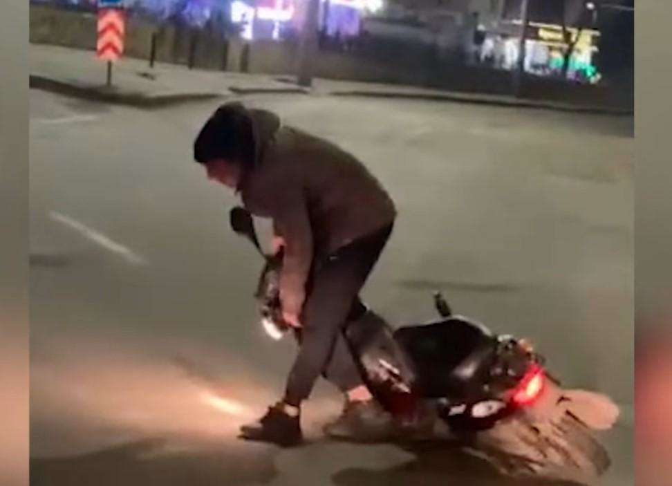 На Севастопольской площади в Киеве полицейские утром заметили мужчину, безуспешно пытавшегося сесть на поврежденный мотороллер Yamaha.