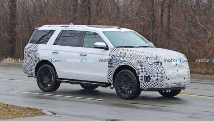 Фотошпионы Motor1 поймали на дорогах США прототип гибридного варианта Ford Expedition с замаскированными лицевой частью и кормой.