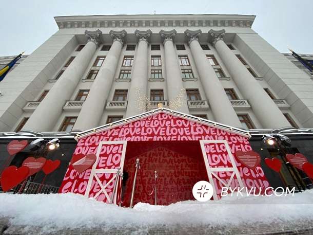 В Киеве на улице Банковой возле Офиса президента установили праздничную локацию и фотозону ко Дню влюбленных. Об этом сообщают Буквы.