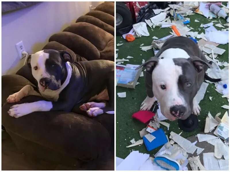 Хозяйка с радостью выбежала на порог, ожидая доставку долгожданных книг, но оказалось, ее шкодливый питбуль добрался до них раньше! Он решил изучить книги первым, но кажется, они ему не понравились.
