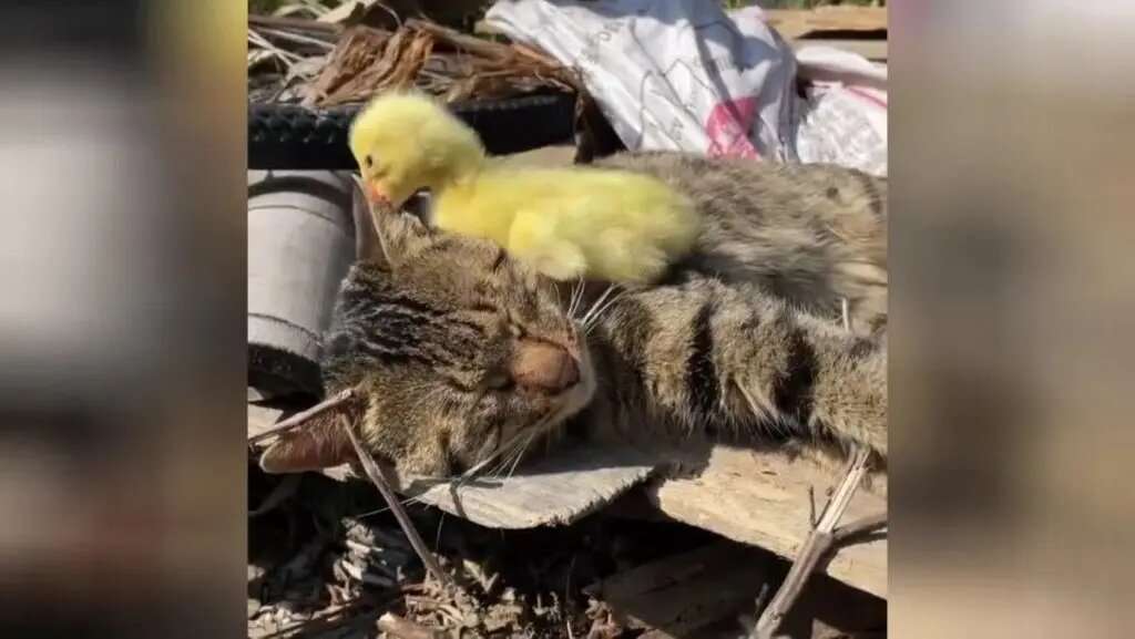 Неугомонный утенок разбудил кота