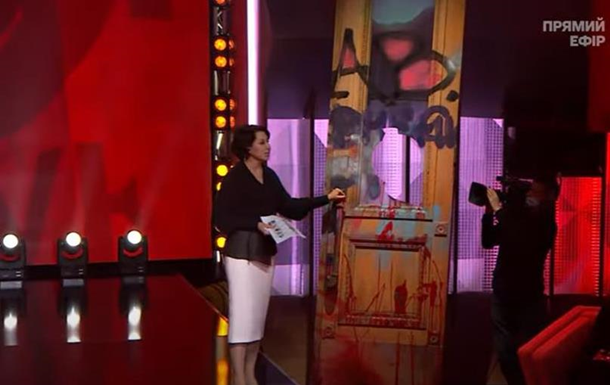 В прямой эфир программы Право на власть в четверг, 25 марта, принесли обрисованную и разбитую дверь из здания Офиса президента.