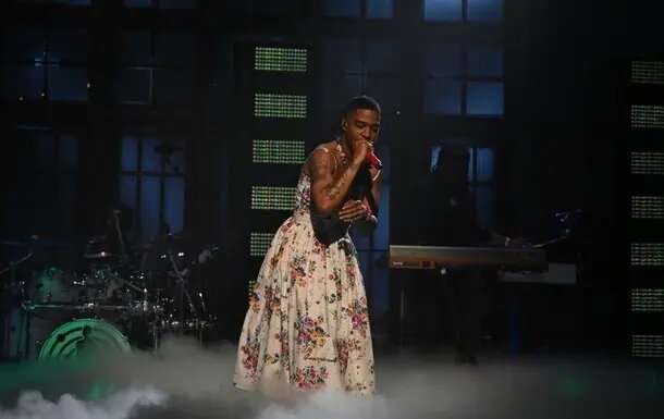 Хип-хоп-исполнитель Kid Cudi выступил на телешоу Saturday Night Live в необычном наряде.