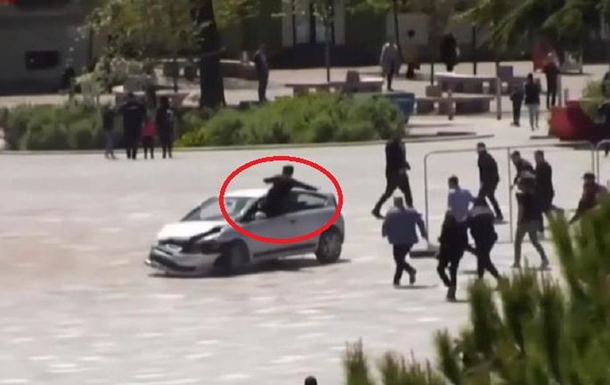 Инцидент произошел на большой пешеходной площади в центре Тираны. На площадь на скорости выехал автомобиль и начал совершать хаотичные движения.
