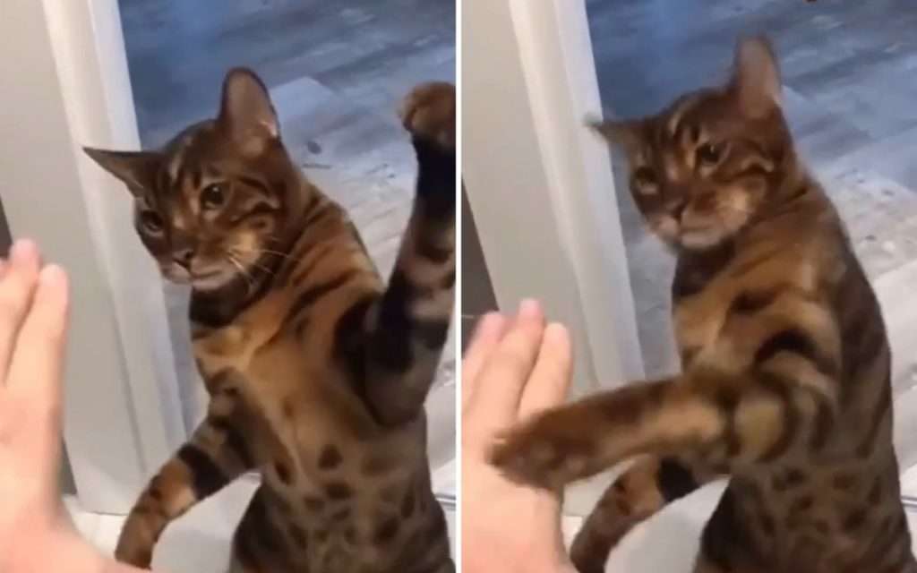 Некоторые котейки обладают совершенно уникальными талантами. Например, бенгал из этого ролика, умеет боксировать. Хозяин кота решил снять на видео, как питомец отрабатывает удар. Получилось очень эффектно.
