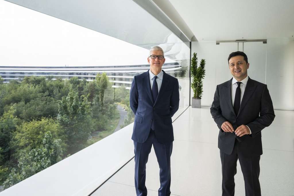 Президент України Володимир Зеленський під час робочого візиту до США зустрівся з генеральним директором Apple Тімом Куком у штаб-квартирі компанії в м. Купертіно.