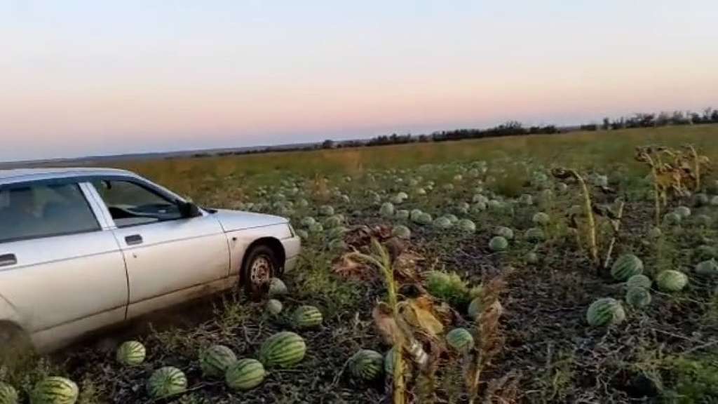 На нем снято арбузное поле по которому едет легковушка и водитель комментирует, что «окончание сезона 2021 оч*о полное«.