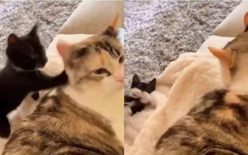Вредный котенок напал на маму и получил мгновенный ответ (ФОТО, ВИДЕО)