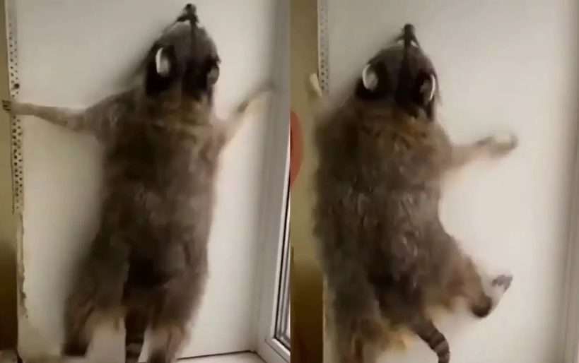 Енот хотел добраться до потолка: подпрыгивал и «танцевал» (ФОТО, ВИДЕО)