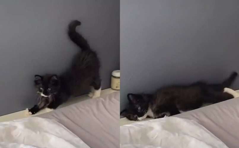 Котенок проснулся уставшим и снова лег спать (ФОТО, ВИДЕО)