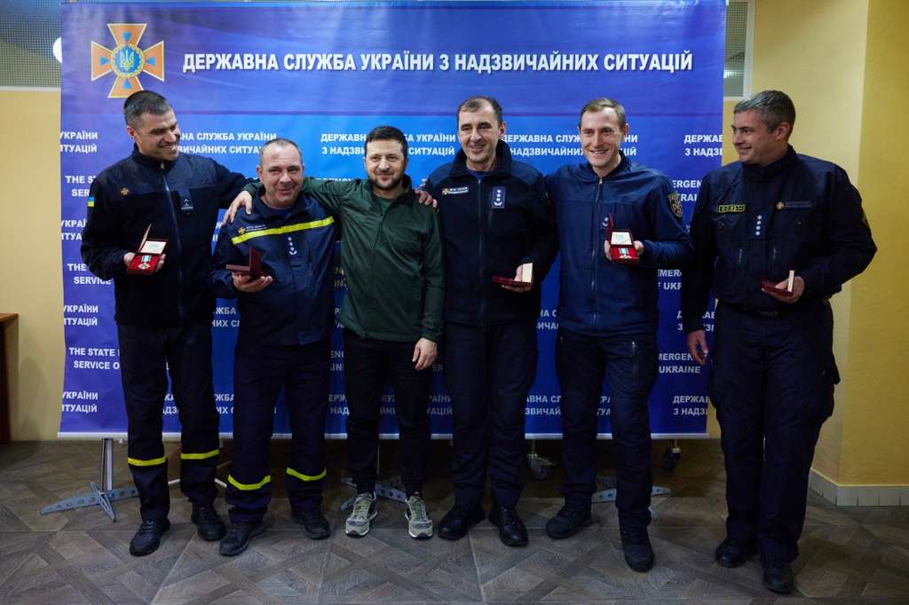 Президент України Володимир Зеленський відзначив працівників Державної служби України з надзвичайних ситуацій, які виявили особисту мужність і самовідданість під час порятунку життя людей і ліквідації наслідків надзвичайних ситуацій, спричинених ракетно-бомбовими ударами російського агресора.