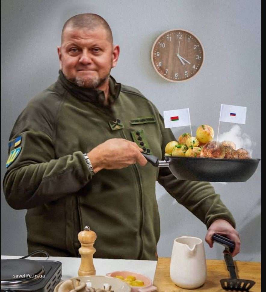 На іншій картинці, з товкачкою, білорусів закликають залишатися вдома. На подібному зображенні уже кілька видів цього кухонного начиння, які автор називає “засобами стримування білоруських військ від західних партнерів”.