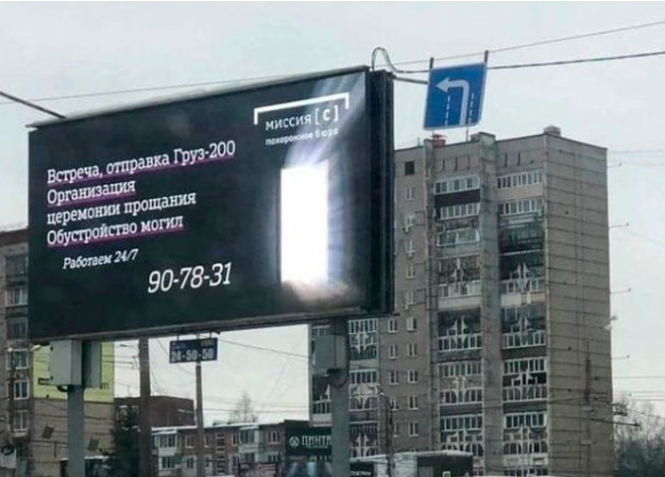 В російському місті встановили банер з рекламою доставки «вантажу 200». ФОТО