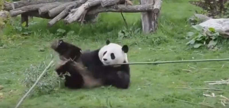 Панда подумала, що вона є непоганою майстринею бойових мистецтв і показала цілу серію вражаючих трюків. Напевно, вона дуже засмутилася б, якби дізналася, що виглядає зовсім не грізно і смертоносно, а дуже комічно.
