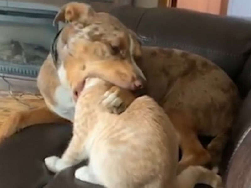 Захопилася: собака зайшов надто далеко, вилизуючи кішку (ВІДЕО)