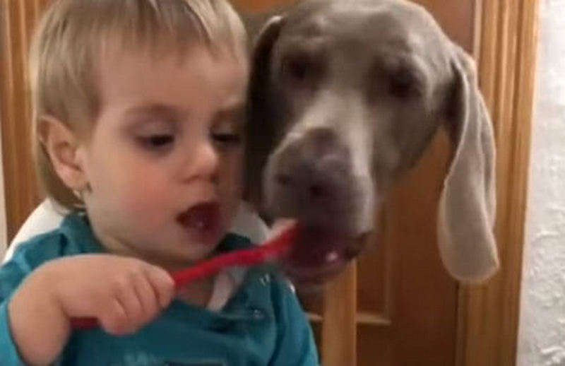 Тут чотиринога злодійка розуміє, що настав її час, і не дає своєму маленькому господареві донести їжу до рота. Варто додати, що дитина якщо і ображається на нахабну вихованку, то не дуже сильно.