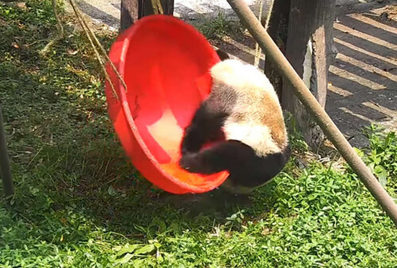 Панда осоромилася, намагаючись покататися на гойдалці (ВІДЕО)