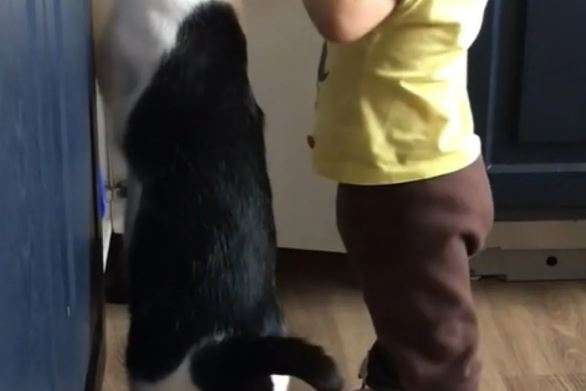 Зухвале «пограбування» кухні однорічною дитиною і котом потрапило на відео