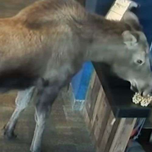 Джасмін Палмер, яка працює в кінотеатрі «Kenai Cinema» (Кенай, Аляска, США), здивувалася та трохи злякалася, побачивши не звичайного відвідувача, а лося.