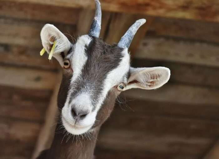 Жінка проводила час на фермі, де у дворі будинку розважалися місцеві мешканці. Кілька кіз і собака веселилися на всю, але у якусь мить все пішло не за планом. Точніше, один з місцевих мешканців вирішив проскочити через складаний стілець, але не прорахував свої габарити.