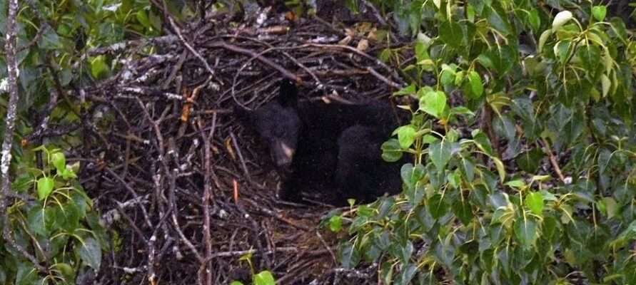 Під час огляду пташиних гнізд на Алясці дослідники натрапили на незвичну картину: у гнізді білоголового орлана безтурботно спав немаленький барибал (Ursus americanus).