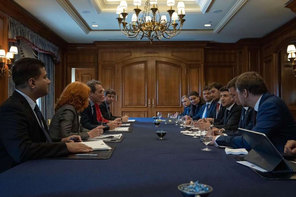 Президент України Володимир Зеленський у Торонто провів зустріч з віце-президентом Світового банку з питань регіону Європи та Центральної Азії Сірілом Мюллером. Глава держави подякував за співпрацю Світового банку з Україною.